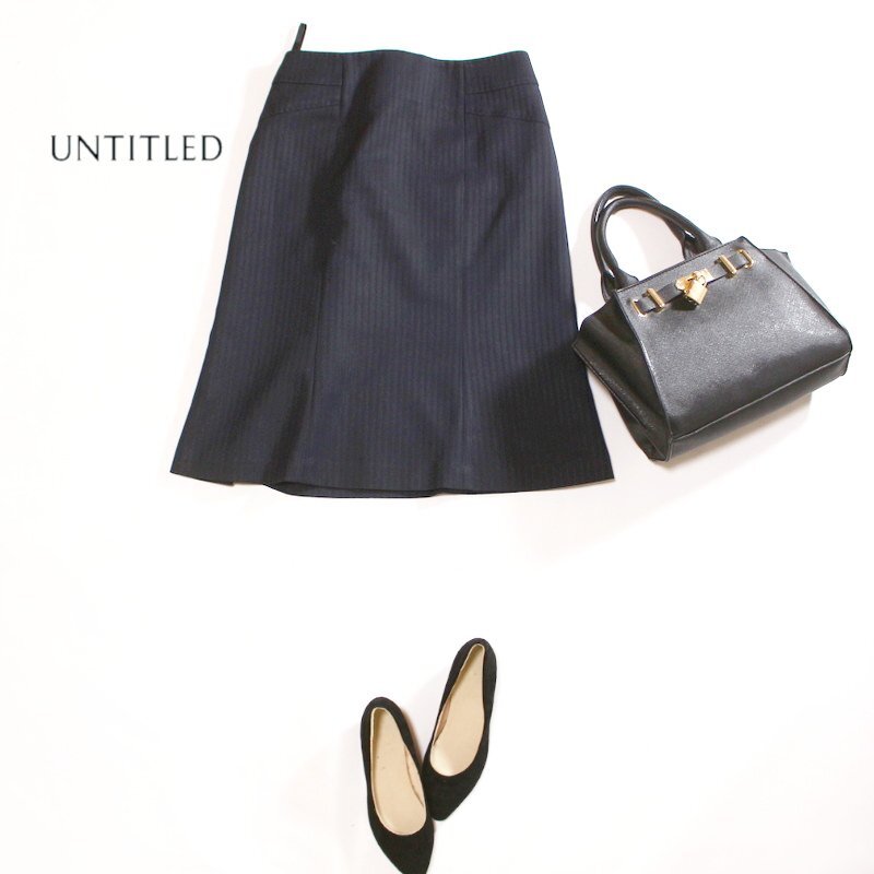 アンタイトル UNTITLED 株) ワールド 春 夏 さらり ストレッチ ストライプ スーツ サマー フォーマル タイトスカート 2 9号 ネイビー 绀