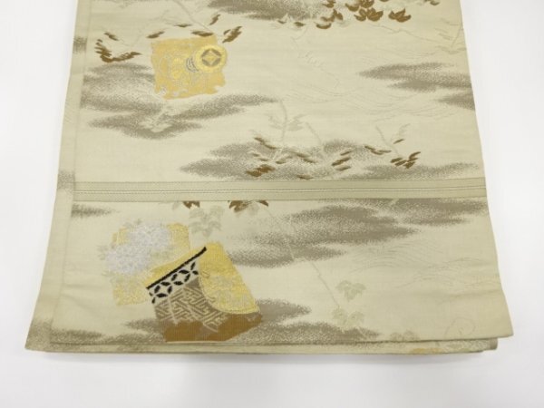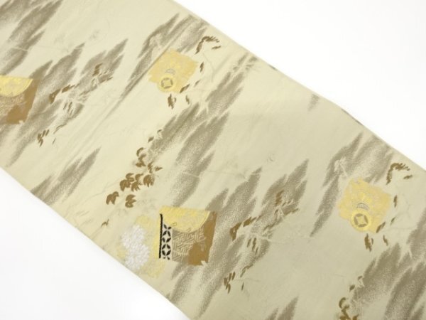 ys7394831; 宗sou 破れ色纸に鼓・茑の叶模様织り出し丸帯(材料)【アンティーク】【着】