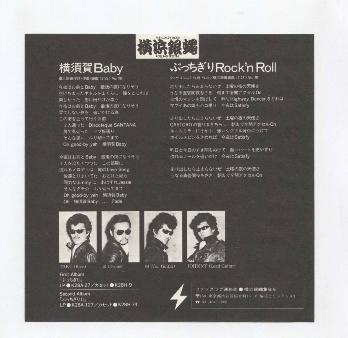 【EP レコード シングル 同梱歓迎】 横浜银蝿 ■ 横须贺BABY ■ ぶっちぎりROCK'N ROLL ■ 翔 タミヤヨシユキ 歌词カード付