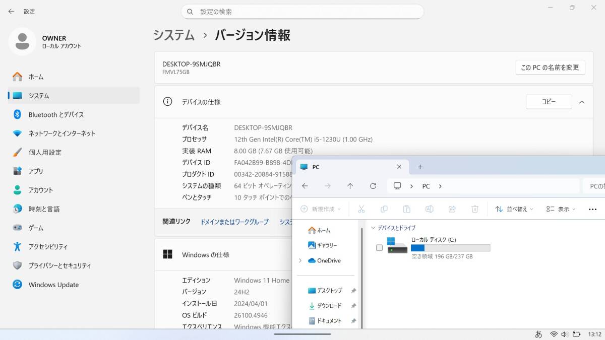 【ジャンク】富士通 FMV LOOX 75/G Intel Core i5-1230U メモリ8GB+SSD256GB Office2021有 13.3型有机EL タッチ対応 Win11 送料无料 LOOX4