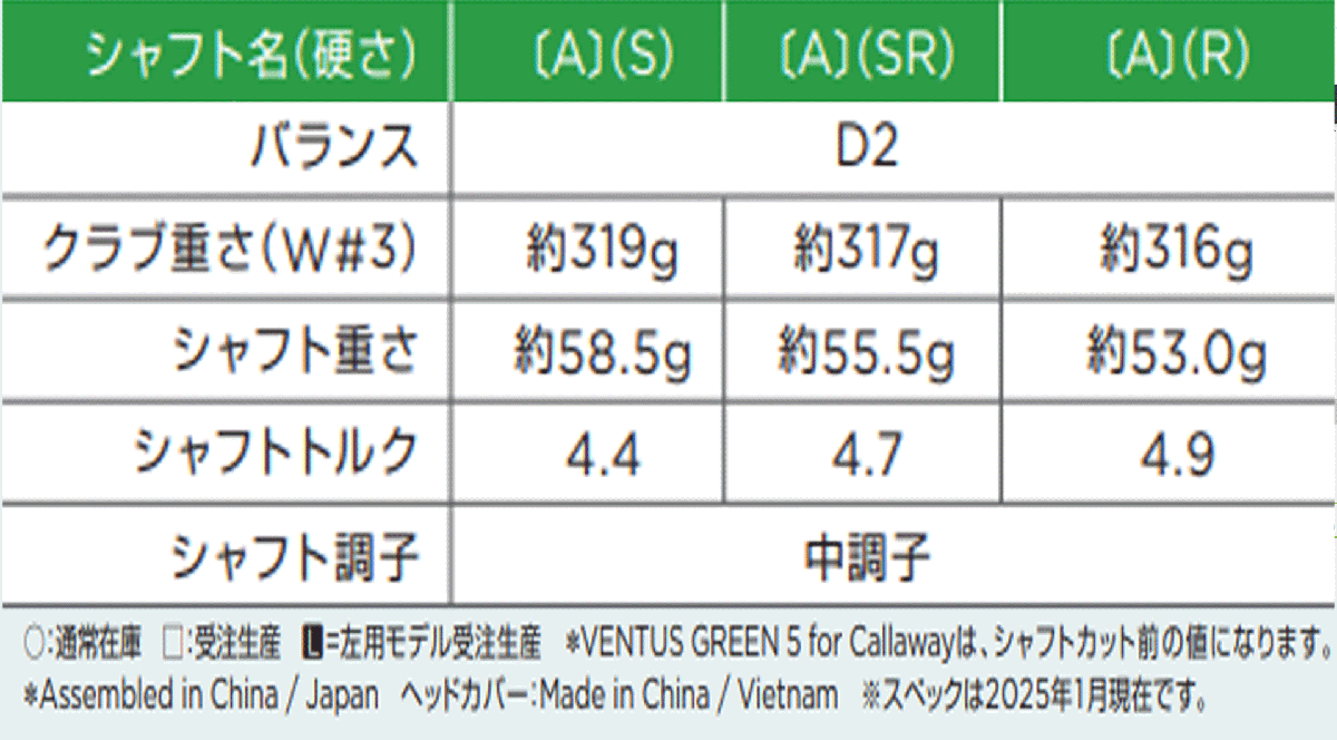 新品■2025.2■キャロウェイ■ELYTE-X■フェアーウェイ1本■W7:21.0■VENTUS GREEN-50 for CALLAWAY カーボン■R■正规品