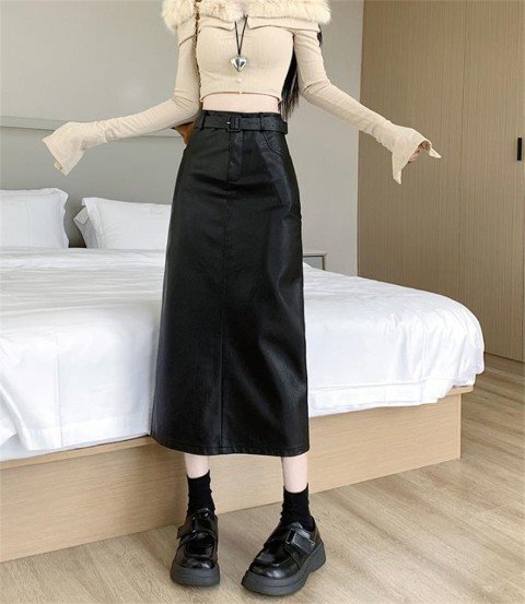ロングスカート スプリット ハイウエスト スカート XL グレー