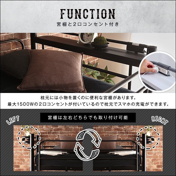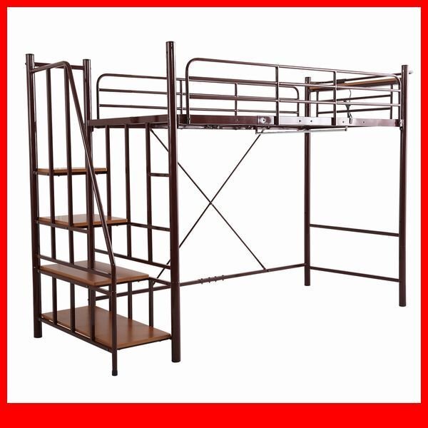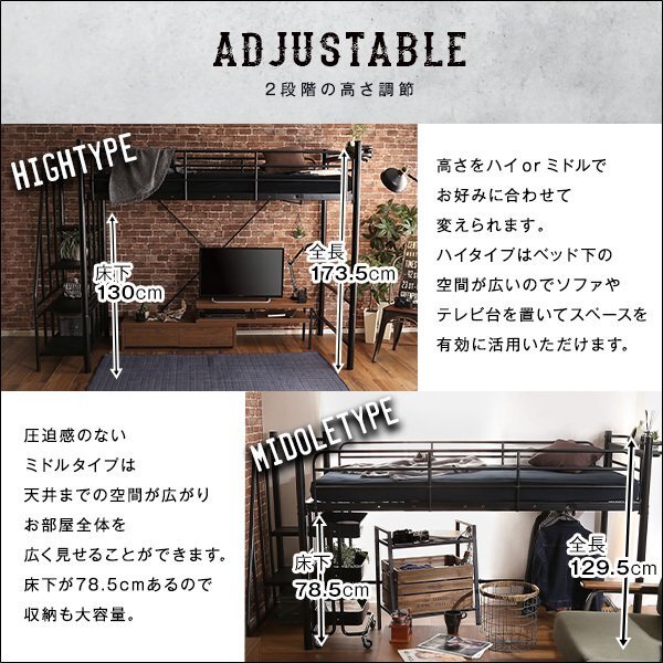 ロフトベッド★ヴィンテージ风 高さ调整可能 阶段付きロフトベッド シングル/宫棚 コンセント ハンガーパイプ/ハイ ミドル/ブラウン/a2