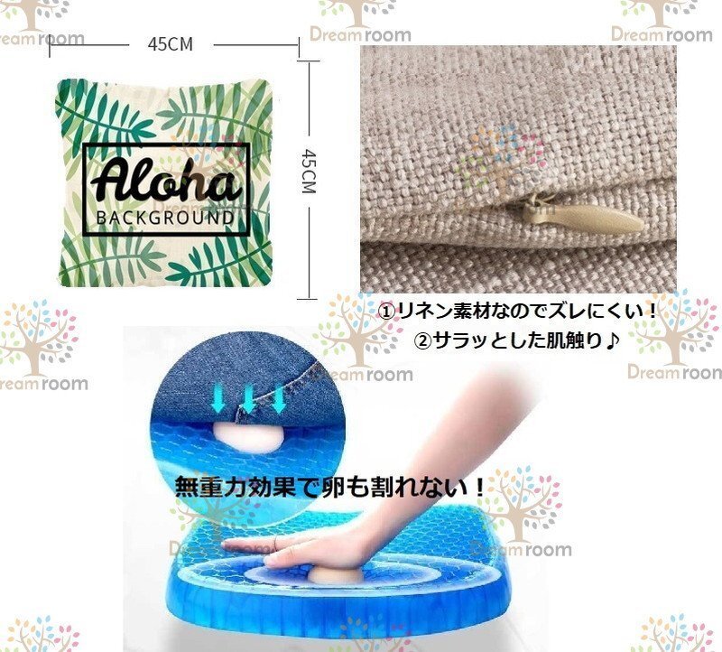 DRボタニカルデザイン ゲルクッション【F-100-11】无重力 卵が割れない 骨盘矫正 腰痛 産后ケア ジェルクッション 座布団 オフィスチェア
