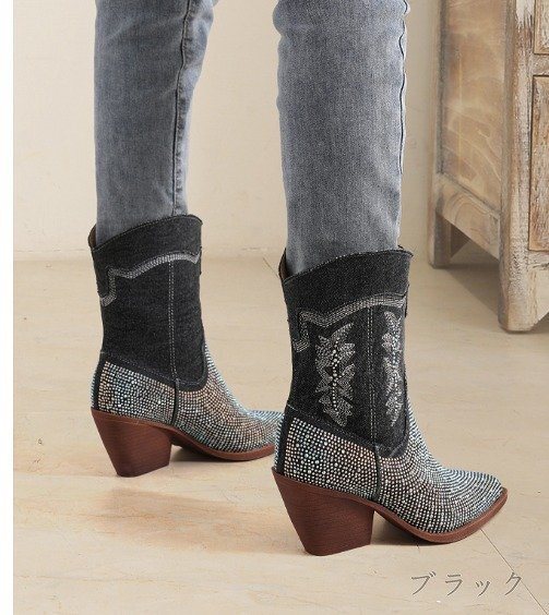 【高品质】全2色 ブーツ 太いヒール 切り替え シンプル 38 ブルー