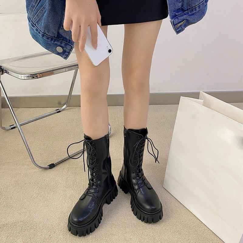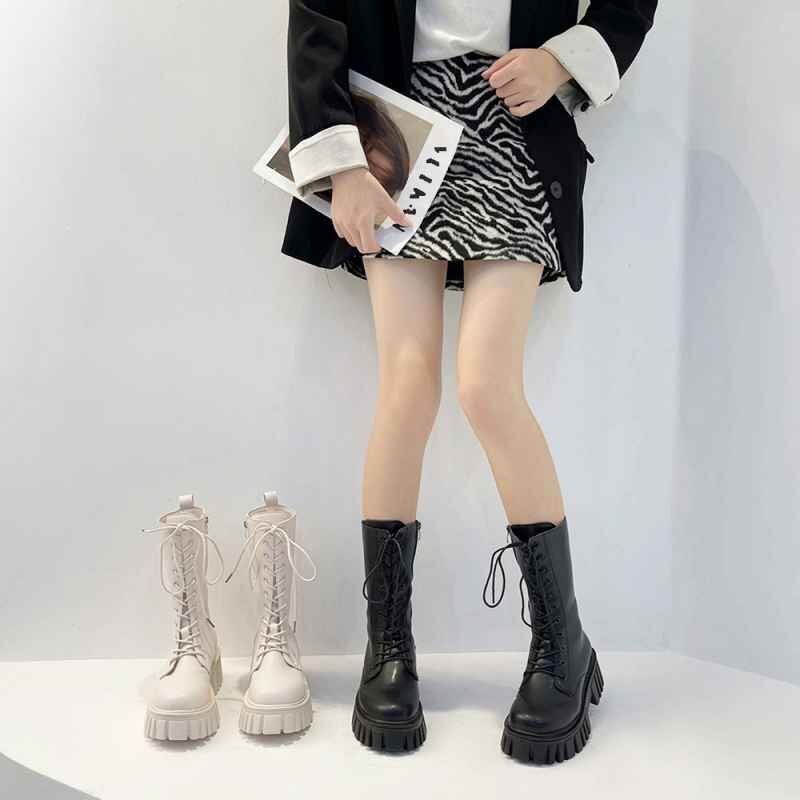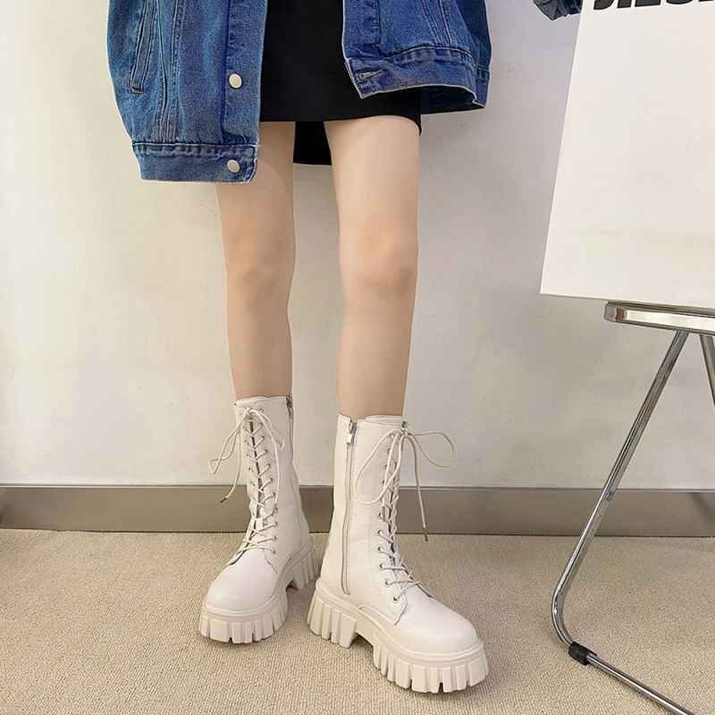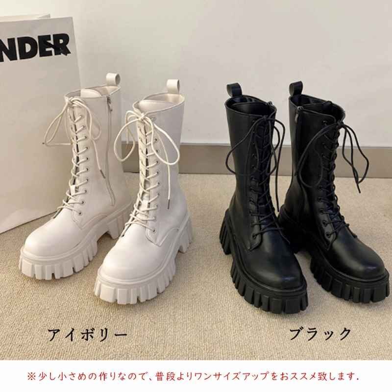 レースアップミドルブーツ ストームブーツ 23.5cm(37) アイボリー
