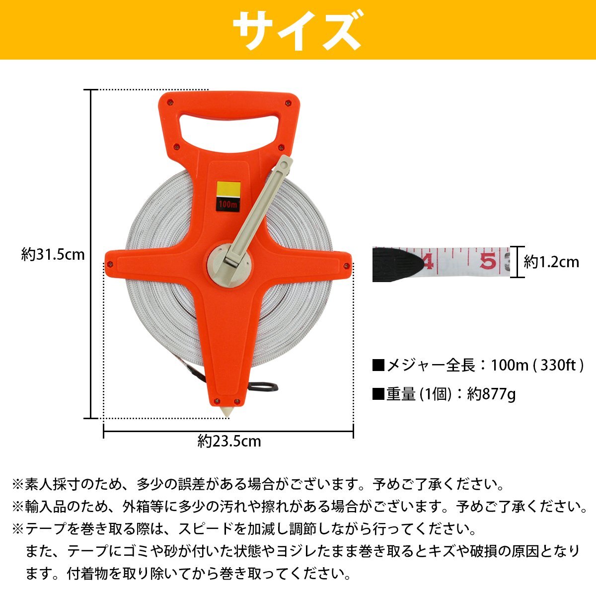 【送料无料】100m 1个 テープメジャー 巻尺 両面目盛り付 コンパクト 距离测定器 ライン引き 运动会 体育祭 部活 计测 工事现场 建筑 测定