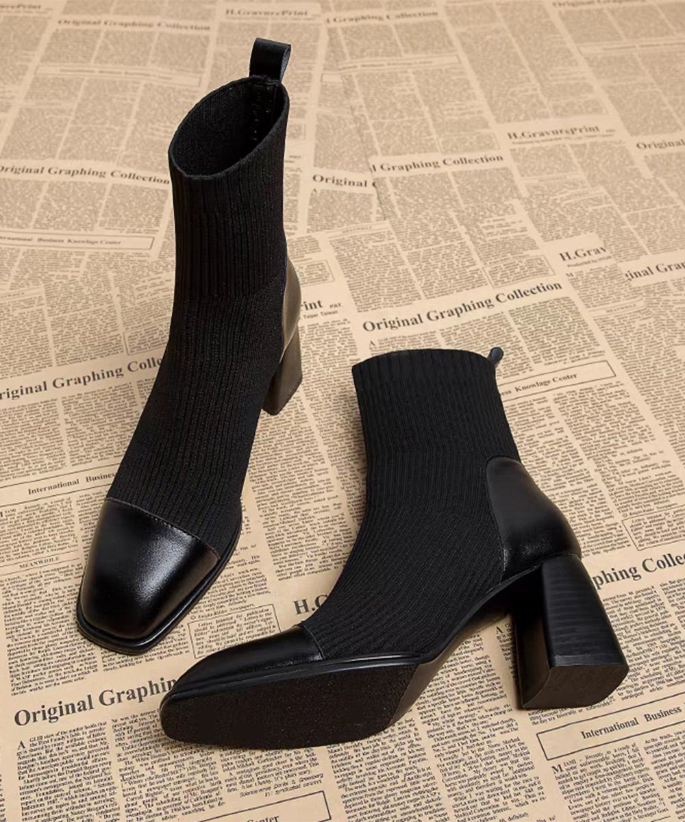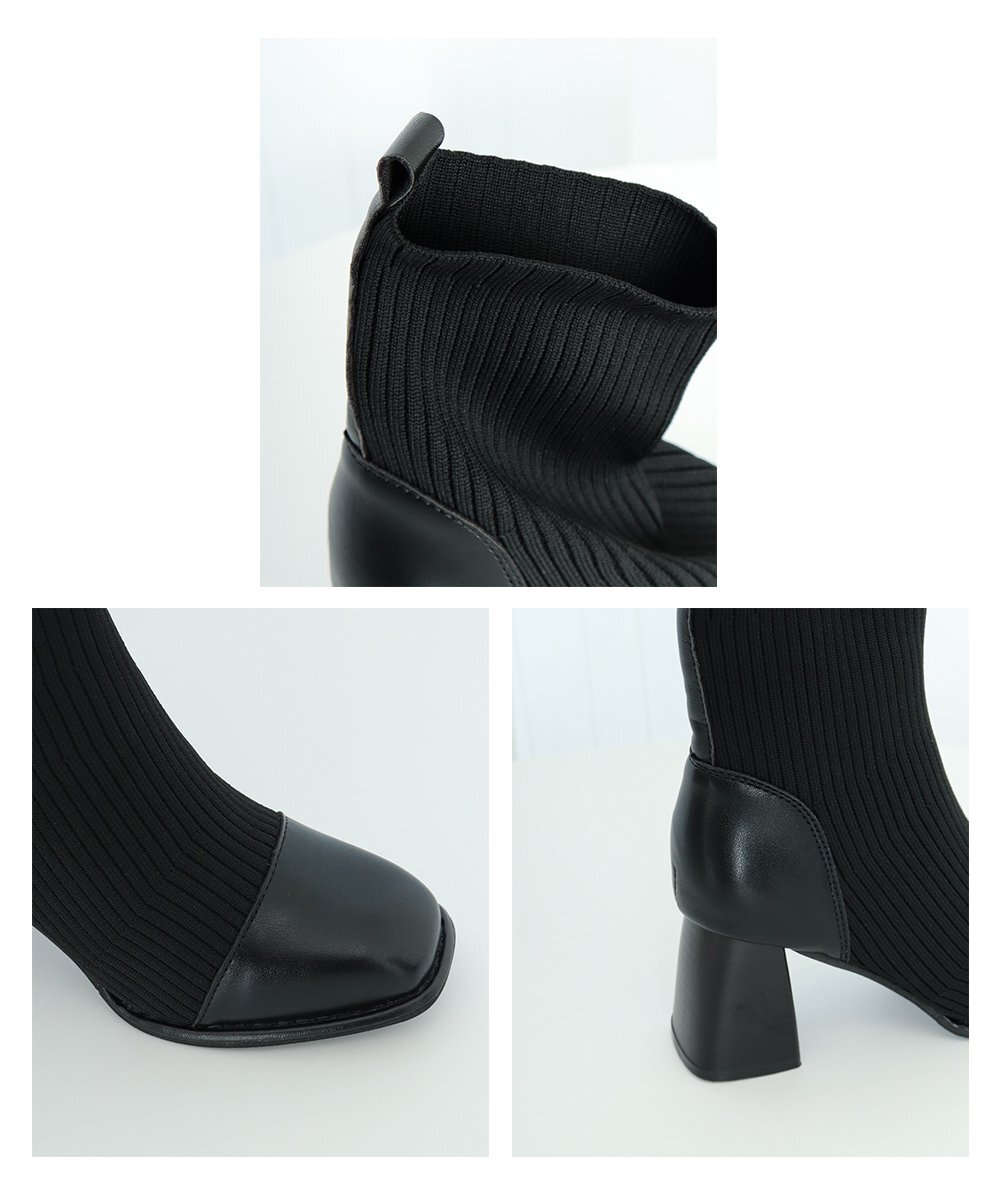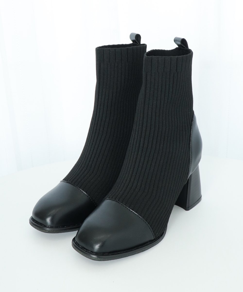 ソックス风ブーツ レディース 太ヒール 25.0cm ブラック