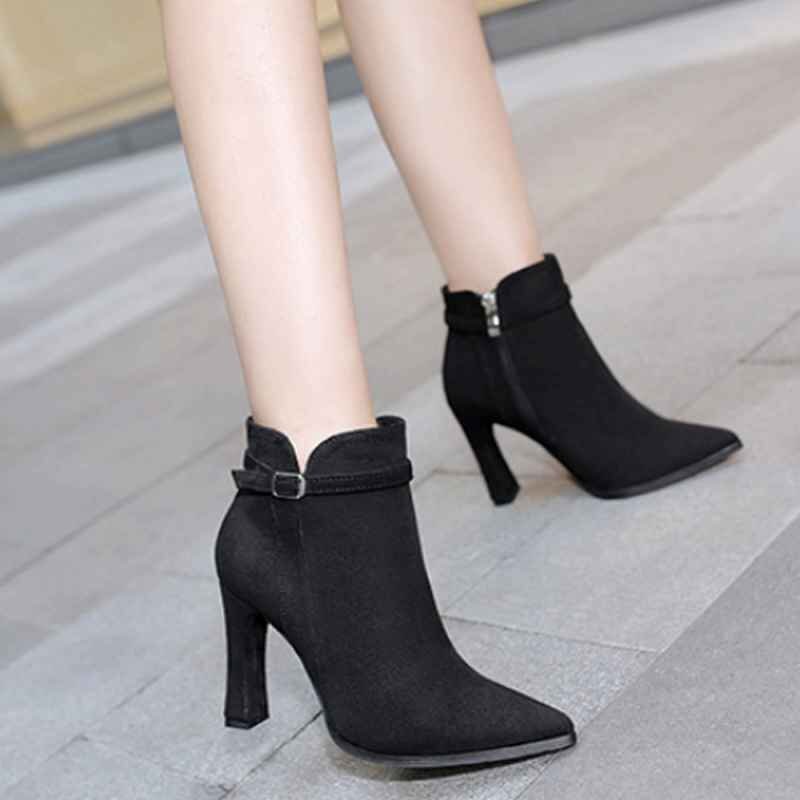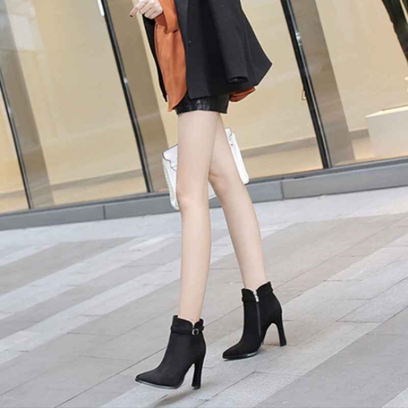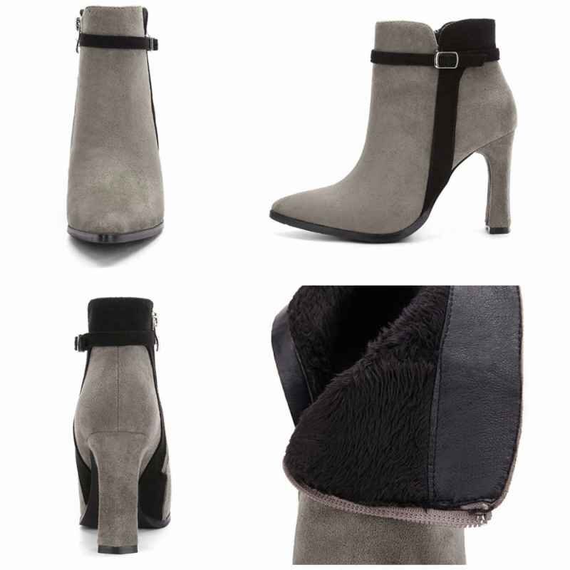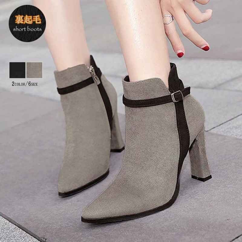 ショートブーツ レディース スエードブーティ 里起毛 ポインテッドトゥ 22.0cm(34) グレー