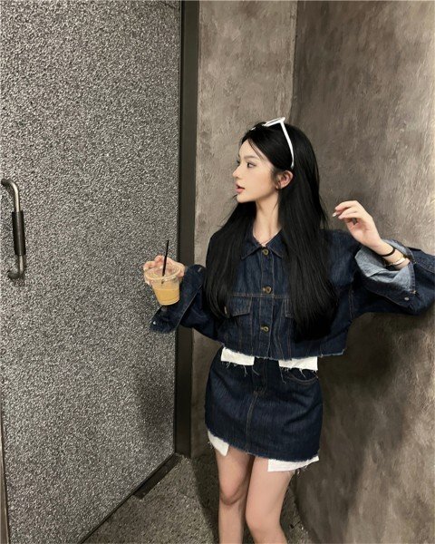 セットアップ 长袖ミニスカート ハイウエスト デニムジャケット M ワンカラー