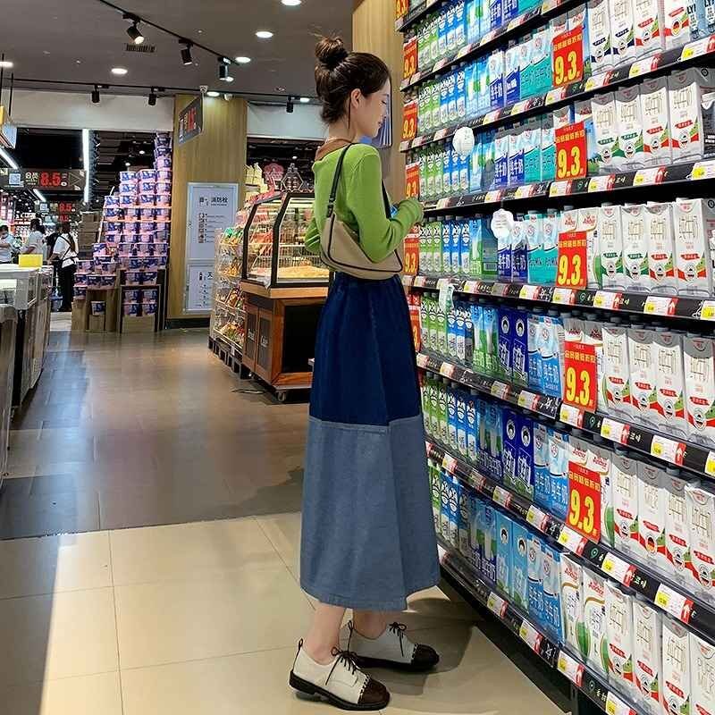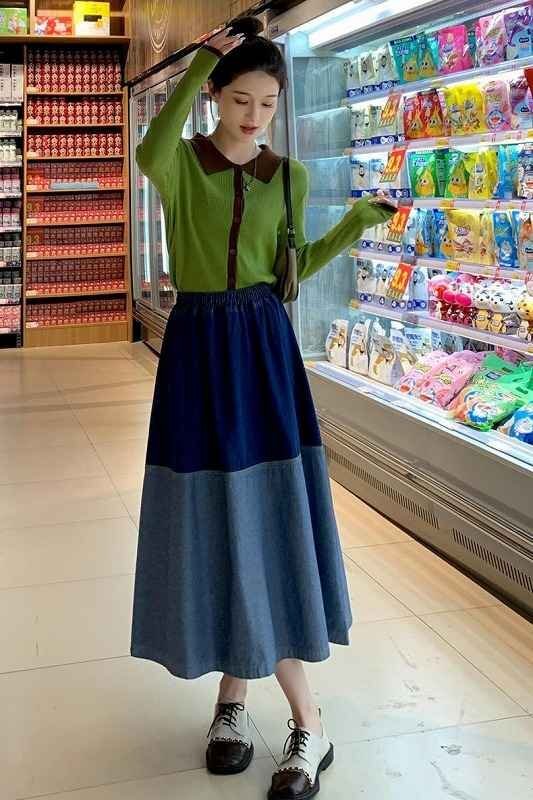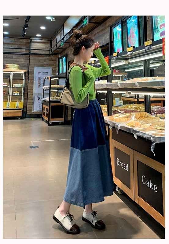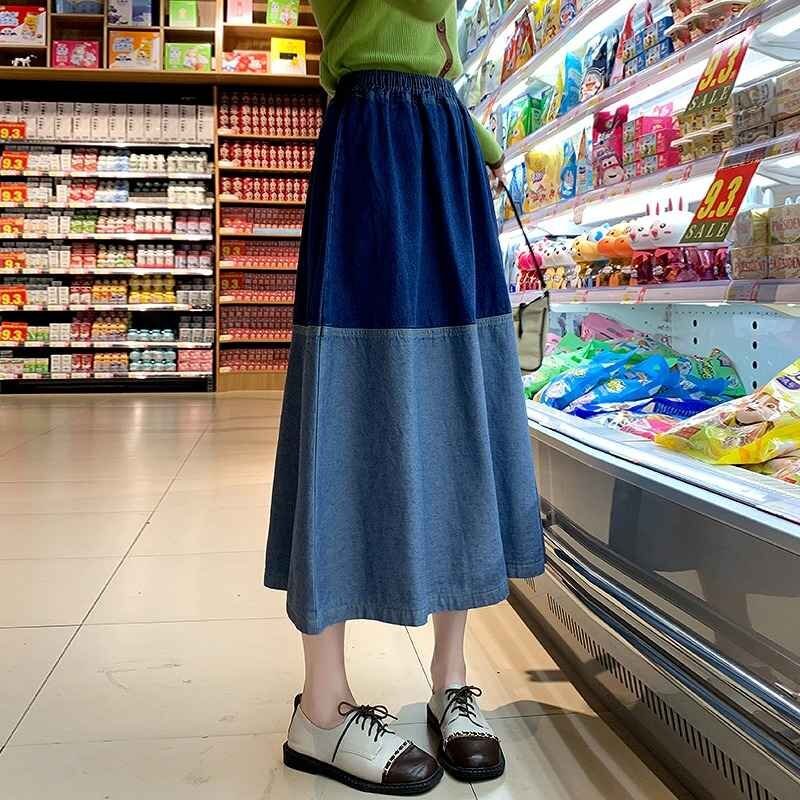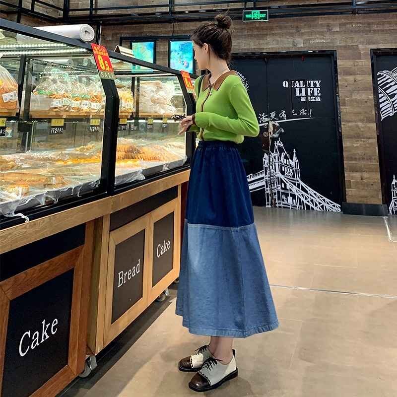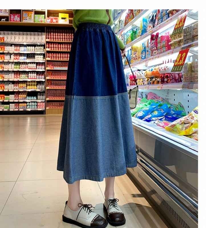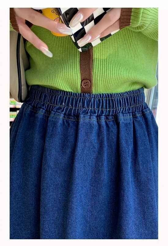 デニムスカート フリル ひざ丈スカート カジュアル シンプル デニム【大きいサイズあり】 M ダークブルー